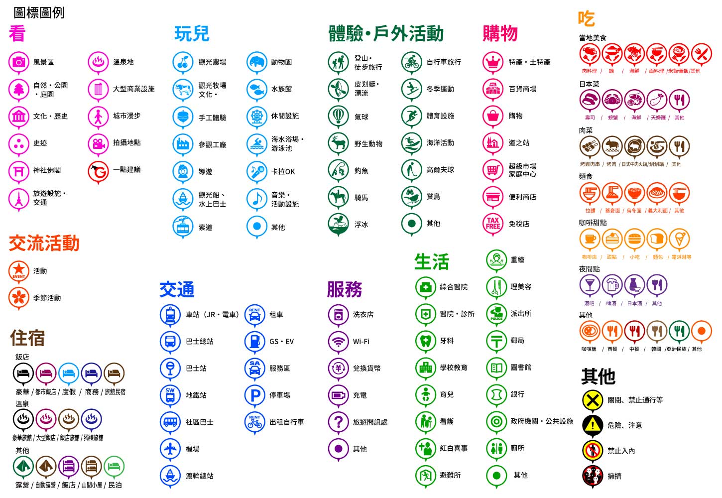 顯示選定類型的標記。 點擊在意的標記後會顯示詳細資訊。 被連結到官方網站和介紹頁。